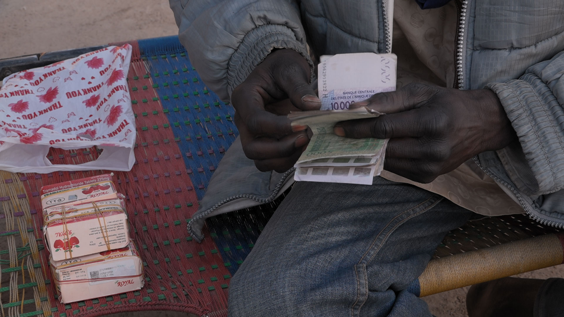 Une moto file à travers le Niger. À bord, Moussa, un jeune touareg et, cachés dans son véhicule, une cinquantaine de comprimés de tramadol, l’un des stupéfiants les plus prisés en Afrique de l’Ouest. En suivant Moussa, nous partons à la rencontre des revendeurs et des usagers de cet opioïde.